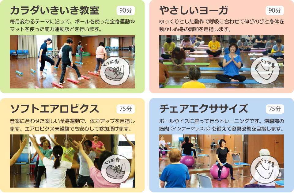 体力に自信のない方から、健康を維持したい方まで、年齢に関係なくご参加いただけます。